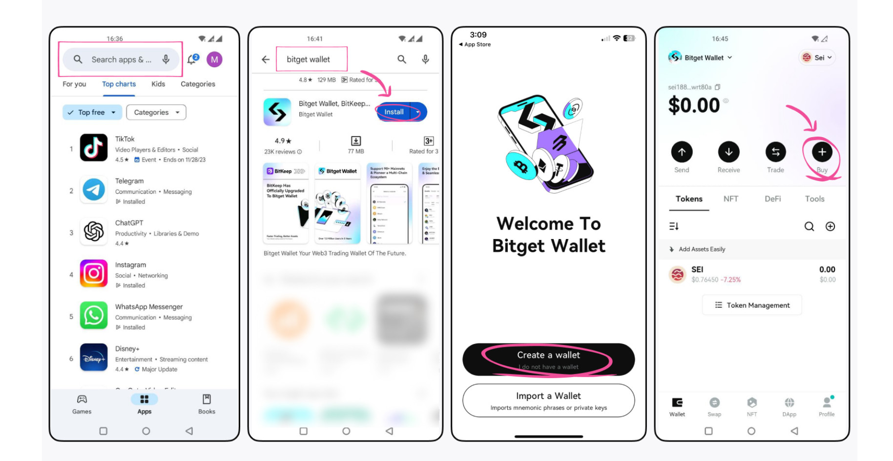 Чтобы создать кошелек Sei в кошельке Bitget, просто: