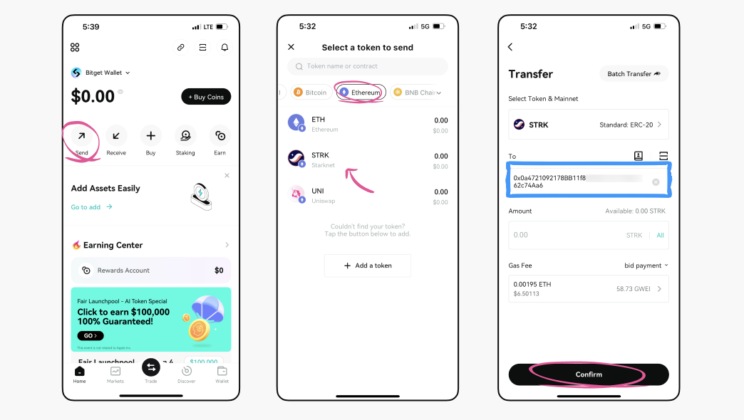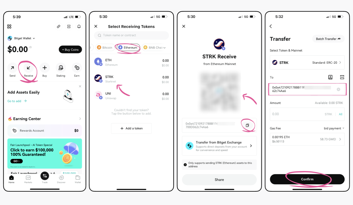 Учебное пособие. Взаимодействие со Starknet (STRK) в кошельке Bitget