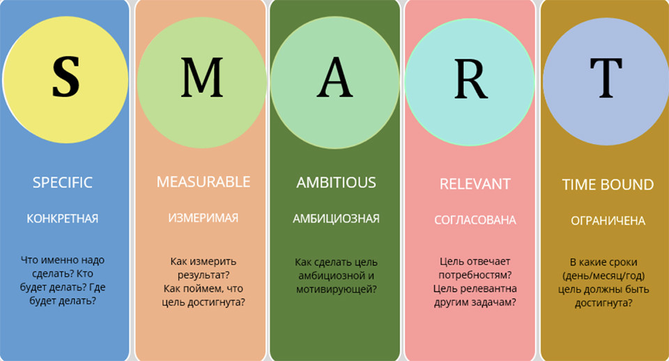 SMART — это популярный подход к постановке целей, который обеспечивает их четкость, достижимость и измеримость. Аббревиатура SMART обозначает критерии целей, которые ставятся в соответствии с этим методом.