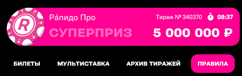 Рапидо Про — экспресс-формат: тираж каждые 5 минут, мгновенная проверка и честная арифметика выплат. Лучший выбор, когда нужны лотерейные билетики без перерыва и острый азарт.