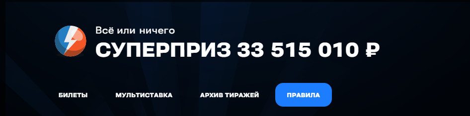 Всё или ничего — парадоксальный формат: угадываешь все или ни одного числа и всё равно забираешь деньги. Добавляю в свой рейтинг лотерей в России за нестандартную механику и высокий процент выплат.
