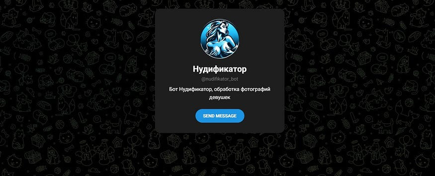 Еще один бот, где можно раздеть фото любой девушки. Функционал здесь стандартный. Оплата принимается банковскими картами, криптовалютой и платежными кошельками Юмани или Киви.