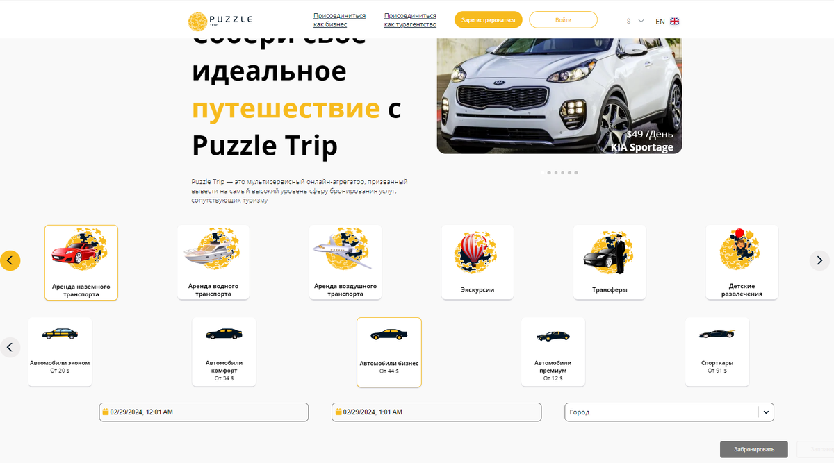 Преимущества Puzzle Trip: — Широкий выбор. Пользователям агрегатора доступен широкий выбор транспортных средств от разных поставщиков. Это позволяет подобрать оптимальное транспортное средство в соответствии с индивидуальными потребностями и предпочтениями. -Удобство бронирования. Puzzle Trip предлагает удобную платформу для бронирования транспорта. Пользователи могут легко найти нужное транспортное средство, выбрать дату аренды, а также добавить дополнительные услуги, такие как навигационная система или детское кресло. — Прозрачность и надежность. Агрегатор обеспечивает прозрачность условий аренды и надежность поставщиков транспортных услуг. Пользователи могут ознакомиться с полными условиями аренды, включая страховку, требования и правила, что помогает избежать неприятных сюрпризов. — Экономия времени и денег. Благодаря Puzzle Trip пользователи могут сэкономить время, которое раньше тратилось на поиск и сравнение предложений разных поставщиков. Кроме того, агрегатор предлагает конкурентные цены, специальные акции и скидки, что делает аренду транспорта более выгодной. — Высокий уровень информационной безопасности. Лучшие стандарты защиты пользовательских данных. — Мгновенная служба поддержки. Поддержка клиентов и партнеров 24/7 . А если понадобится помощь человека, команда службы поддержки на связи с вами и вашими клиентами ежедневно, 12 часов в сутки. -Преодоление языкового барьера. Автоматический перевод благодаря онлайн-переводчику, встроенному в чат. — Имеется приложение для бронирования через мобильный телефон. — Отдельные разделы для регистрации бизнесов и турагентств. Арендовать машину в аэропорту удобно, особенно если летите в новую страну. Если забронировать авто в центре города, то это обойдется ощутимо дешевле, чем брать ее сразу после прилета. Перед оплатой проката можно сравнить цены на самом сайте EconomyBookings. Если оплачиваете услуги по аренде заранее, есть возможность получить хорошую скидку. Всегда можно отменить бронирование, если найдете более выгодное предложение на европейском рынке. Большие компании (Advantage, Payless, Thrifty и Dollar Rental) соперничают друг с другом и часто предлагают бесплатные дополнительные услуги (навигатор, полный бак бензина, детское кресло).Экономичные автомобили, самые дешевые, но их часто бронируют. Чтобы сэкономить семейный бюджет, посадите за руль только одного водителя. Агрегаторы взимают дополнительную плату за второго водителя за рулем. Если нет необходимости на долгосрочную аренду авто, лучше заплатить за несколько часов поездки. Преимущества: — Русскоязычная служба резервирования и поддержки. Круглосуточное обслуживание. — Самые выгодные цены на автомобили всех классов от более 800 автопрокатных компаний, включая все ведущие бренды. Localrent (ранее Myrentacar) является одной из недорогих фирм по прокату автомобилей, где средняя цена за один день аренды составляет около 1500 руб. (22€). Для постоянных клиентов действует система бонусных кодов, которые позволяют еще больше снизить стоимость бронирования. Автопарк компании насчитывает более 250 моделей от разных производителей.Если срочно требуется снять автомобиль за границей, то в сервисе Localrent существует система моментального бронирования. Многие клиенты хорошо отзываются о работе агрегатора и рекомендуют его при поездках в Черного