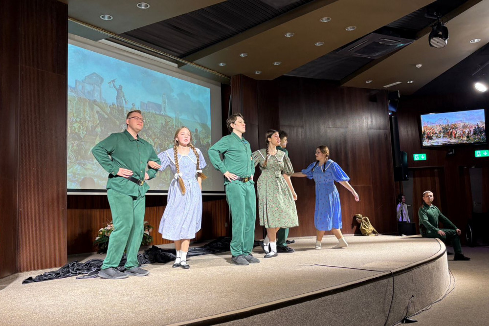 На площадке Национального музея истории Великой Отечественной войны в Минске ребята представили сверстникам свою новую постановку «С чего начинается Родина» — спектакль о знаменитом ветеране-уральце Дмитрие Суворове, который во время операции «Багратион» первым ворвался в столицу Белоруссии.