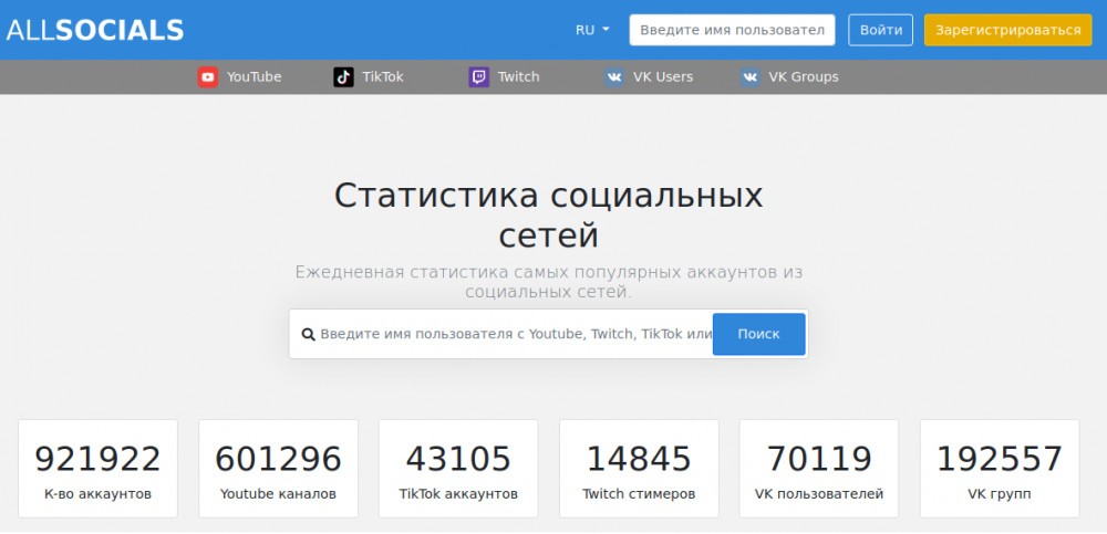 AllSocials - сервис по сбору статистики VK, YouTube, Twitch и TikTok