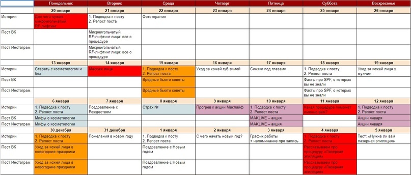 Контент-план для косметологий
