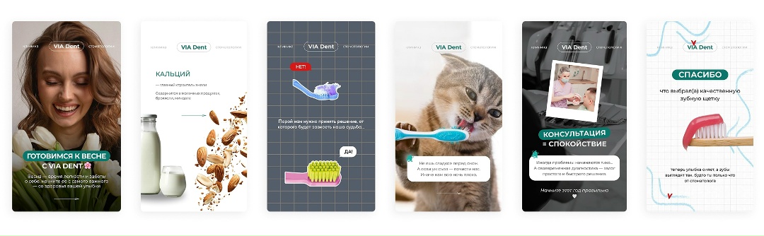 В Stories регулярно делимся полезными материалами: даем советы по уходу за зубами и отвечаем на вопросы пациентов За время работы социальные сети клиники заметно выросли: увеличились просмотры, расширилась аудитория и вырос интерес пользователей к странице. Благодаря регулярному контенту клиника стала получать больше обращений через соцсети. Пользователи записываются на лечение и консультации, а также интересуются средствами гигиены для полости рта. > 1000 новых подписчиков во ВКонтакте > 300 новых подписчиков в Instagram Остались вопросы? Пишите нам sales@frogz.ru