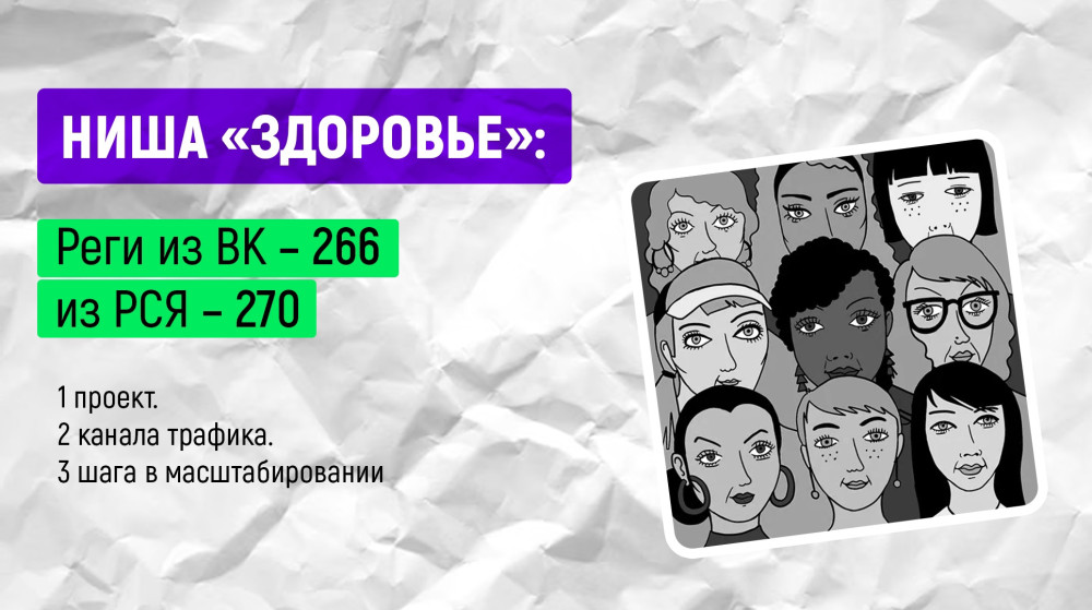 Ниша «здоровье»: Реги из ВК по 266, из РСЯ – 270. [1 проект. 2 канала трафика. 3 шага в масштабировании]