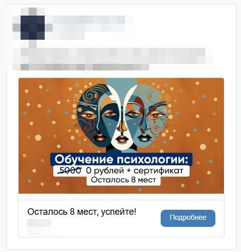 В качестве баннера лучшие результаты у артов с триггерными офферами. Проект «Б». Здесь аудитория шла на вебинар с пошаговой подачей и демо-практикой. Получили CR из реги в покупку 0,45%, при среднем чеке продукта в 260к+ рублей. Внимание ЦА цепляли баннеры с живыми фотографиями спикера (поэтому скринов с примерами не будет — NDA). Что делали в текстах: Заходили через желание аудитории освоить психологию не просто для души, а для получения вполне материальных благ. Пример заголовка: "Женщины, которые хотят зарабатывать психологией, точно поймут: забирайте реальную технику для старта от практикующего специалиста". В тексте закрывали возражения, показывали варианты и давали ссылочку. Результаты стабильного трафика в нише «Обучение профессии психолог»: Проект «А». Реализованный бюджет — 761 768р Количество регистраций — 1 193 Стоимость реги — 638р CR в покупку (из реги в продажу) — 0,83% Средний чек продукта — 153 012р Окупаемость — х2 от запуска к запуску Проект «Б». Реализованный тестовый бюджет — 177 511р Количество регистраций — 438 Стоимость реги — 405р CR в покупку (из реги в продажу) — 0,45% Средний чек продукта — 265 000р Окупаемость — х3 Как показывает практика, лучше всего в нише заходят прямые креативы с конкретикой и отработкой актуальных (и даже сезонных) болей. Сейчас на обоих проектах идёт масштабирование по нашей системе из 5 шагов с плавным увеличением рекламного бюджета. Продолжаем удерживать стоимость регистрации в пределах КПИ. *и уже нащупали связки, которые помогут снизить цену реги на несколько процентов. А какие цифры на вашем проекте? Если готовы получать сочные результаты без сливов и конских рег, то просто оставьте заявку и мы свяжемся с вами в течение 24 часов.