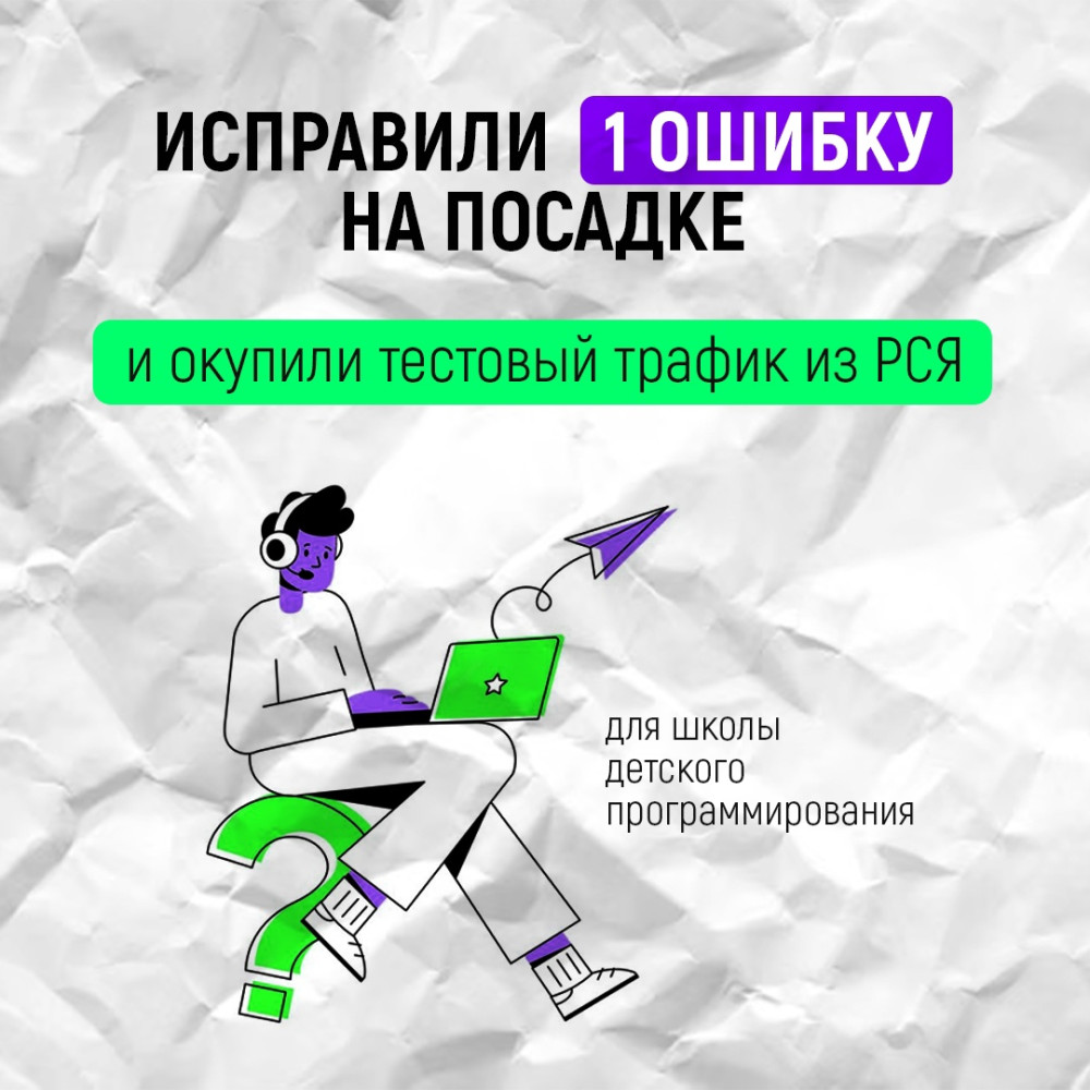 Исправили 1 ошибку на посадке и окупили тестовый трафик из РСЯ для школы детского программирования