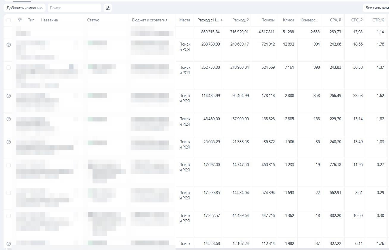 — разбили кампании по целевым сегментам