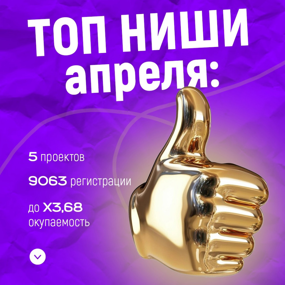 Топ ниши апреля: 5 проектов, 9063 регистрации и окупаемость до х3,68