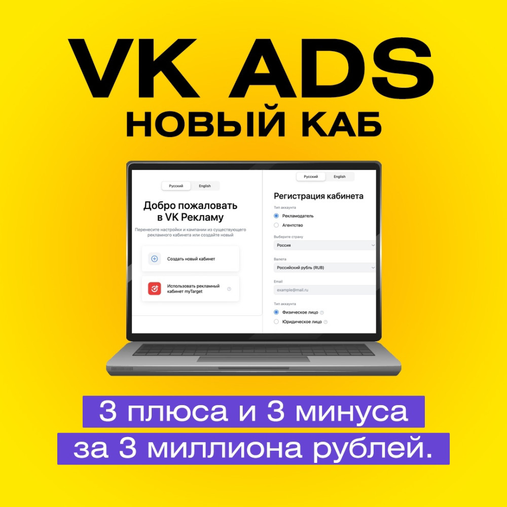 VK ADS (новый каб). 3 плюса и 3 минуса за 3 миллиона рублей