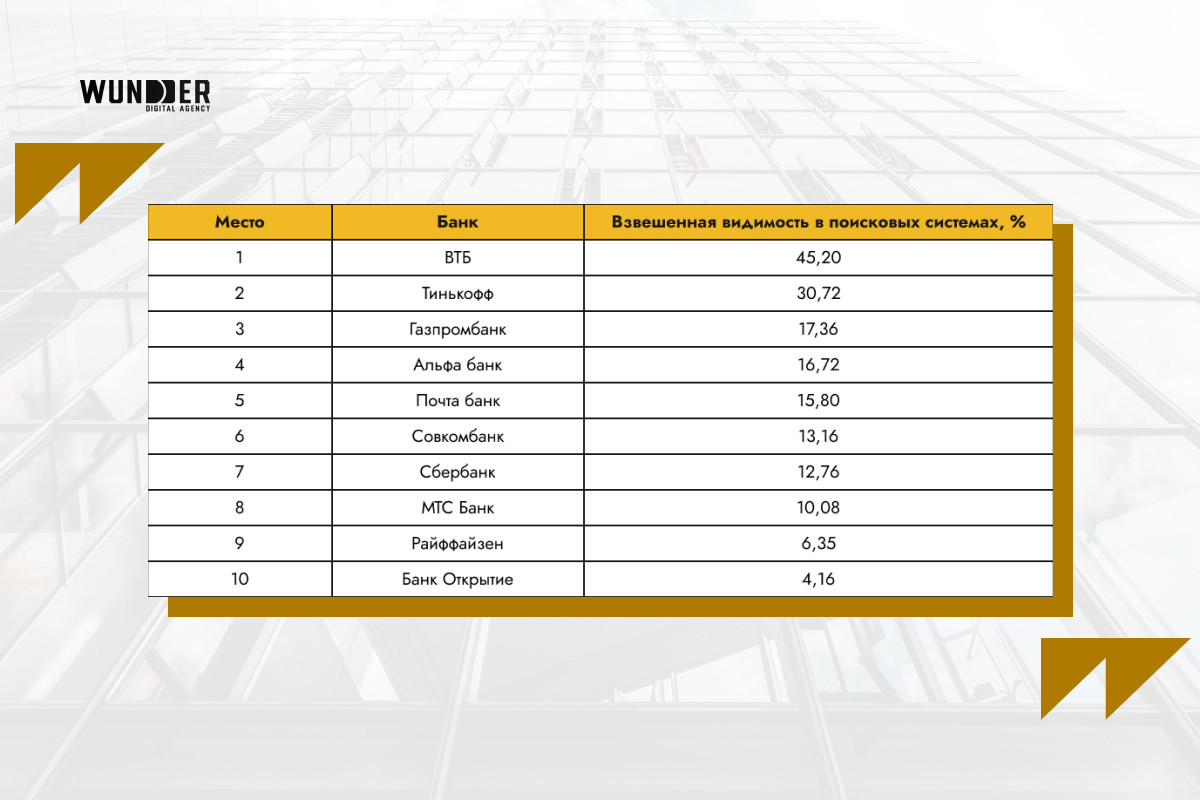 SEO-рейтинг сайтов банков России за март 2024. Исследование Wunder Digital