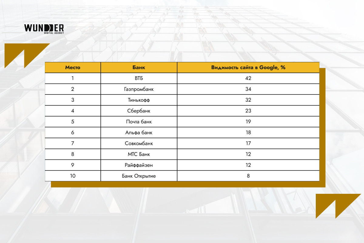 Топ-10 сайтов банков: видимость в Google