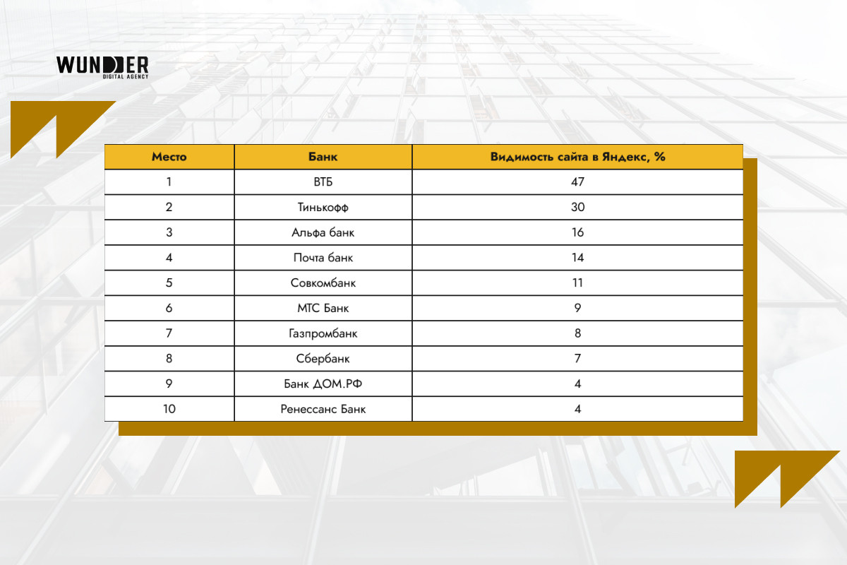 Топ-10 сайтов банков: видимость в Яндекс