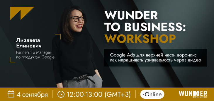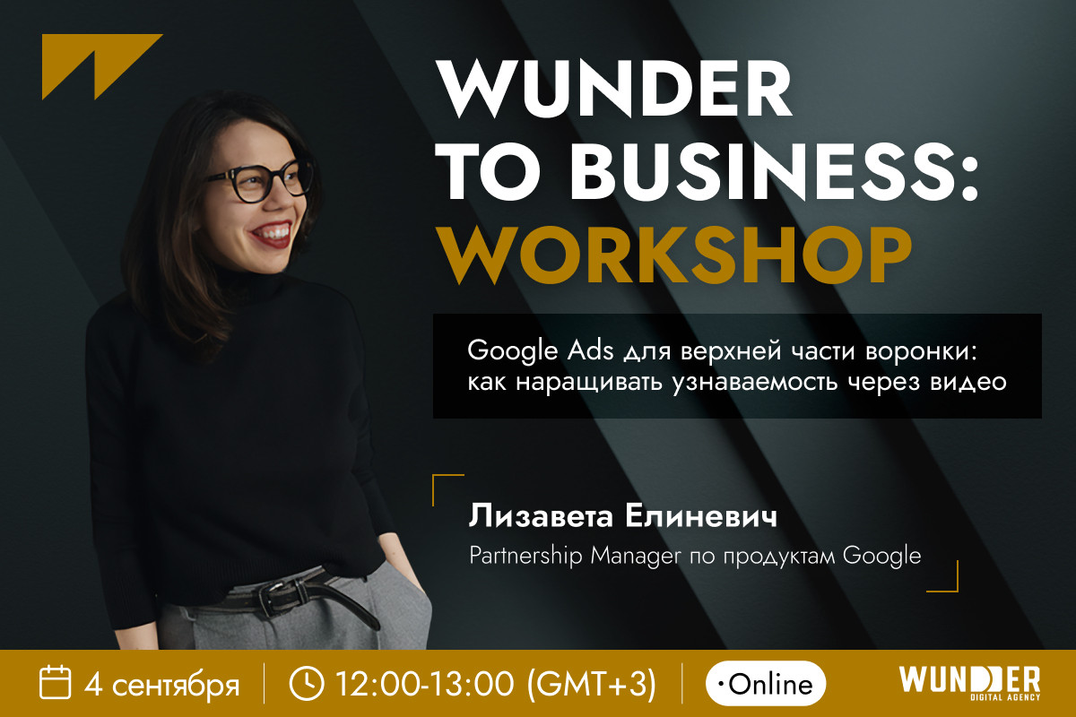 4 сентября инновационный digital-хаб Wunder Digital проведет практический онлайн-воркшоп Wunder to Business, посвященный тому, как эффективно работать с видео в экосистеме Google для усиления узнаваемости бренда, расширения охвата и выстраивания коммуникации на верхнем уровне воронки.