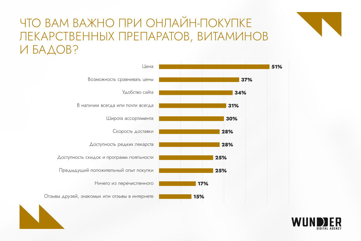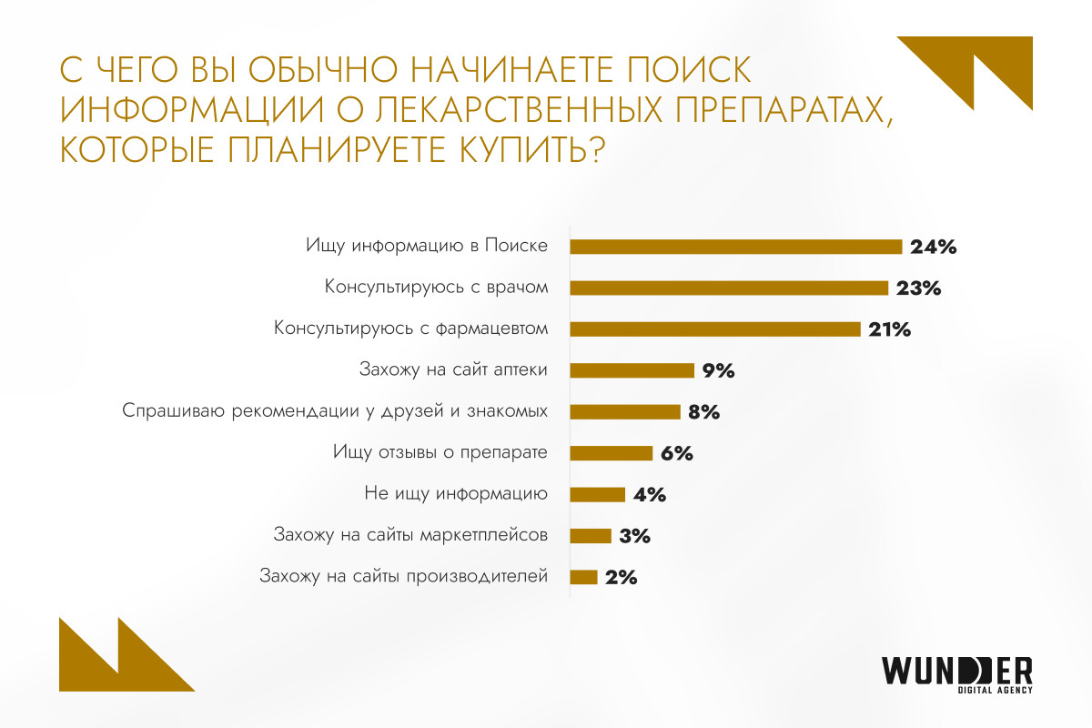 В топе запросов — витамины и БАДы, обезболивающие, антибиотики, а также препараты для лечения глаз и ЖКТ. Поиск становится одним из главных источников информации наряду с советом врача или фармацевта. Поэтому брендам крайне важно обеспечивать максимальную видимость в поисковых системах.