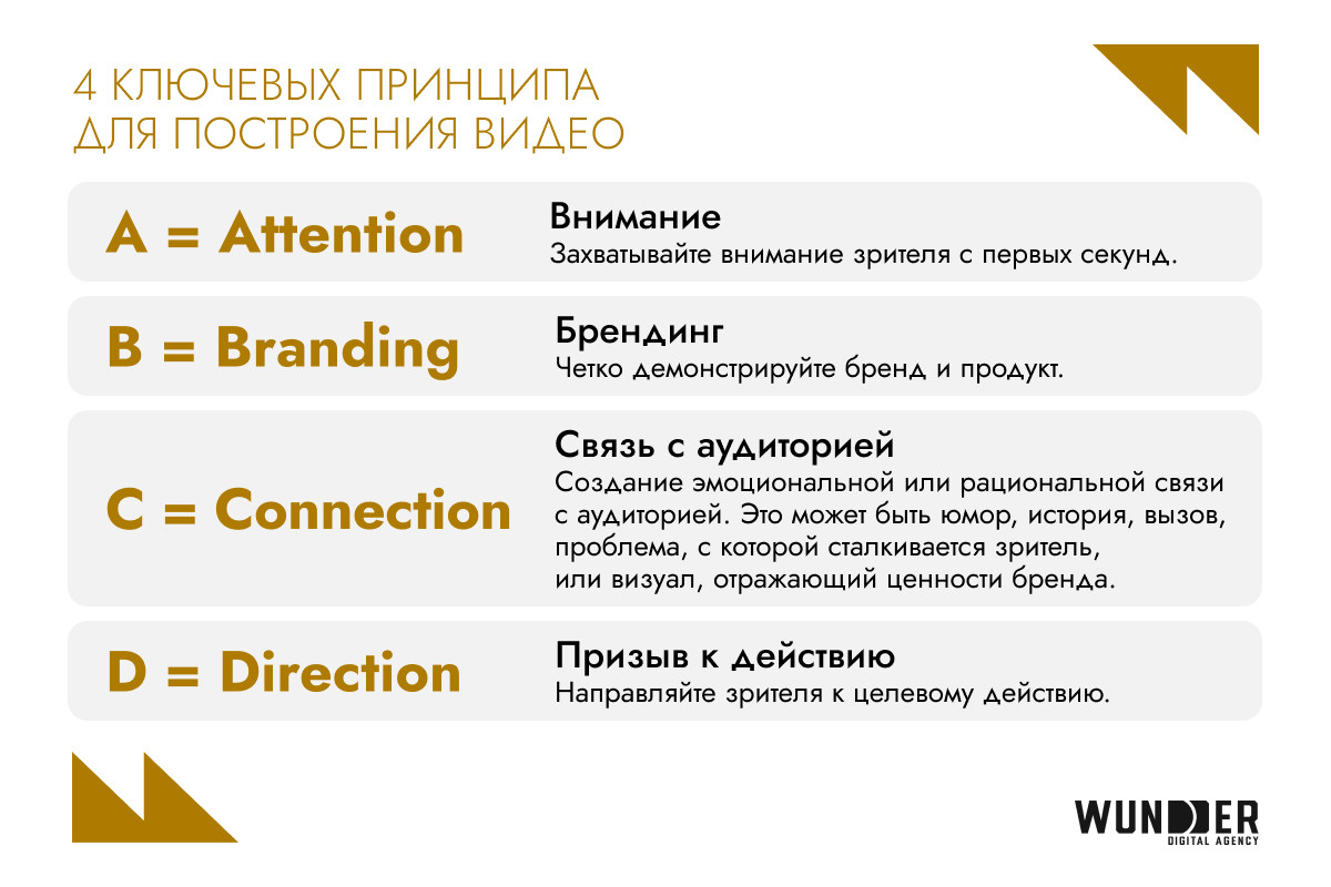 - узнаваемость: рассказывайте истории, вызывайте эмоции, делайте динамичные и визуально насыщенные ролики;