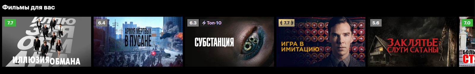Эта статья — краткая сводка БАЗЫ, которую выдал наш СЕО (Артем Конаков) в видосе. Поэтому, если захотите увидеть полный анализ сайта — переходите на удобную для вас платформу и посмотрите оригинальное видео: А также на отечественных платформах: Первое, что видит пользователь на сайте — огромный рекламный блок с «избранным» фильмом/сериалом. Основная проблема этого блока заключается в том, что настолько огромный баннер фильма никак не смотивирует пользователей кликнуть на него. Да, в редких случаях это может помочь, но размер не всегда равно качество. Можно просто уменьшить его. Даже в половину. Либо взять за основу первые блоки в других онлайн-кинотеатрах. Так, например, тот же Ivi показывает несколько «избранных» материалов, которые пользователи сами могут изучать (посредством клика на стрелки) К слову, такой же подход используют «Premier» и «Okko» На наш взгляд, этот экран можно переработать: Эти разделы есть на Кинопоиске. Проблема заключается в том, что располагаются они в нижней части страницы и пользователю нужно весьма долго скролить до их достижения. Это поможет нам с наибольшей вероятность попасть в запросы пользователя и ему не придется совершать лишние действия. Мы попросили наших дизайнеров переработать главный экран и вот, что у нас получилось: Лично у редактора частая проблема с запоминанием серии и таймингов, поэтому без этой функции ему было бы тяжело) К тому же, сам Кинопоиск любит синхронизацию просмотра с разных устройств. Если ты начал смотреть «Флэш», сидя в метро с наушниками, то придя домой — сможешь продолжить просмотр с ПК, ноута, планшета или TV. Удобненько. Не совсем понятно, записать ли блок выше в плюсы или минусы, но факт остается фактом. Кинопоиск следит за тем, что происходит в киноиндустрии, поэтому время от времени показывает блоки с нашумевшими актерами. Так, например, если вы пропустили, Юрия Борисова номинировали на премию оскар. В честь этого на Кинопоиске появилась подборка с фильмами, в которых он принимал участие. Здесь Кинопоиск старается подбирать контент, который понравится пользователю, на основе просмотренных фильмов и оставленных оценок. Перейдя в полную версию блока мы видим N фильмов, которые могут вас «заинтересовать». Проблема этого блока заключается в том, что сервис предлагает ограниченное количество контента. И если ни один из представленных фильмов вас не заинтересовал, то вам придется искать дальше, вернувшись на предыдущую страницу. Но вот вопрос: а как вернутся назад? Привычный паттерн — нажать на логотип в левом верхнем углу. Но вот неувязочка, если вы попробуете сделать это, то... ...вас переведет на основную страницу Кинопоиска. И для возвращения на онлайн-кинотеатр вам нужно: Почему, а главное — зачем? Вопрос к Кинопоиску. Но сделано это крайне неудобно. Да и в целом не совсем понятно, какой с этого толк. Неужели пользователи онлайн-кинотеатра в действительности хотят заходить на основной сайт, нежели продолжать искать для себя фильм/сериал/мультик и т.д.? Дальнейший поиск фильмов ограничен главной. И этот запрос может решаться бесконечно долго. Об этом Артем подробнее рассказал в видео, а нам предлагаю перейти ко второму запросу. Казалось бы, фильтрация и сортировка уже настолько привычные механики, что используется везде. Но нет, к сожалению или к счастью, этот функционал под