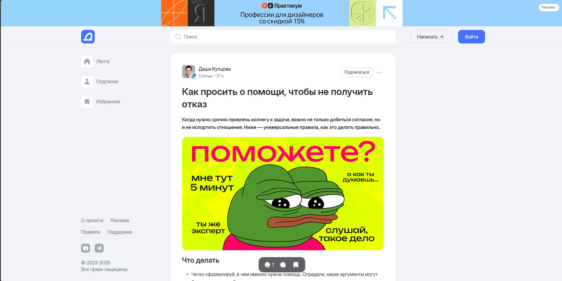 - Я автор, который хочет опубликовать свою статью. Нужно понять, насколько удобен процесс публикации на сервисе, какой инструментарий есть, какие минусы и все, что поможет опубликовать материал.
