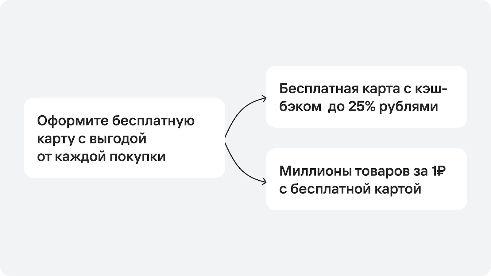 2. Ключевой посыл: бесплатная карта с бонусами — кэшбэк 25% рублями и миллионы товаров за 1 рубль.