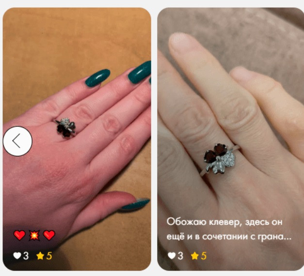 реальные клиентские отзывы, под некоторыми ювелирными изделиями их тысячи, под
