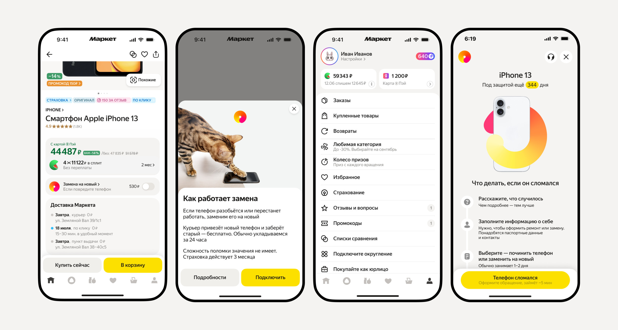 Чтобы заменить сломанное устройство, покупателю нужно открыть в приложении или на сайте раздел «Страхование», нажать кнопку «Телефон сломался» и заполнить заявление. Служба поддержки Маркета проконсультирует пользователя по всем вопросам, возьмет заявление в работу и расскажет о дальнейших шагах. Доставка нового устройства курьерской службой до покупателя в среднем будет занимать сутки. Сама страховка сохраняет свое действие даже при перепродаже или дарении устройства.
