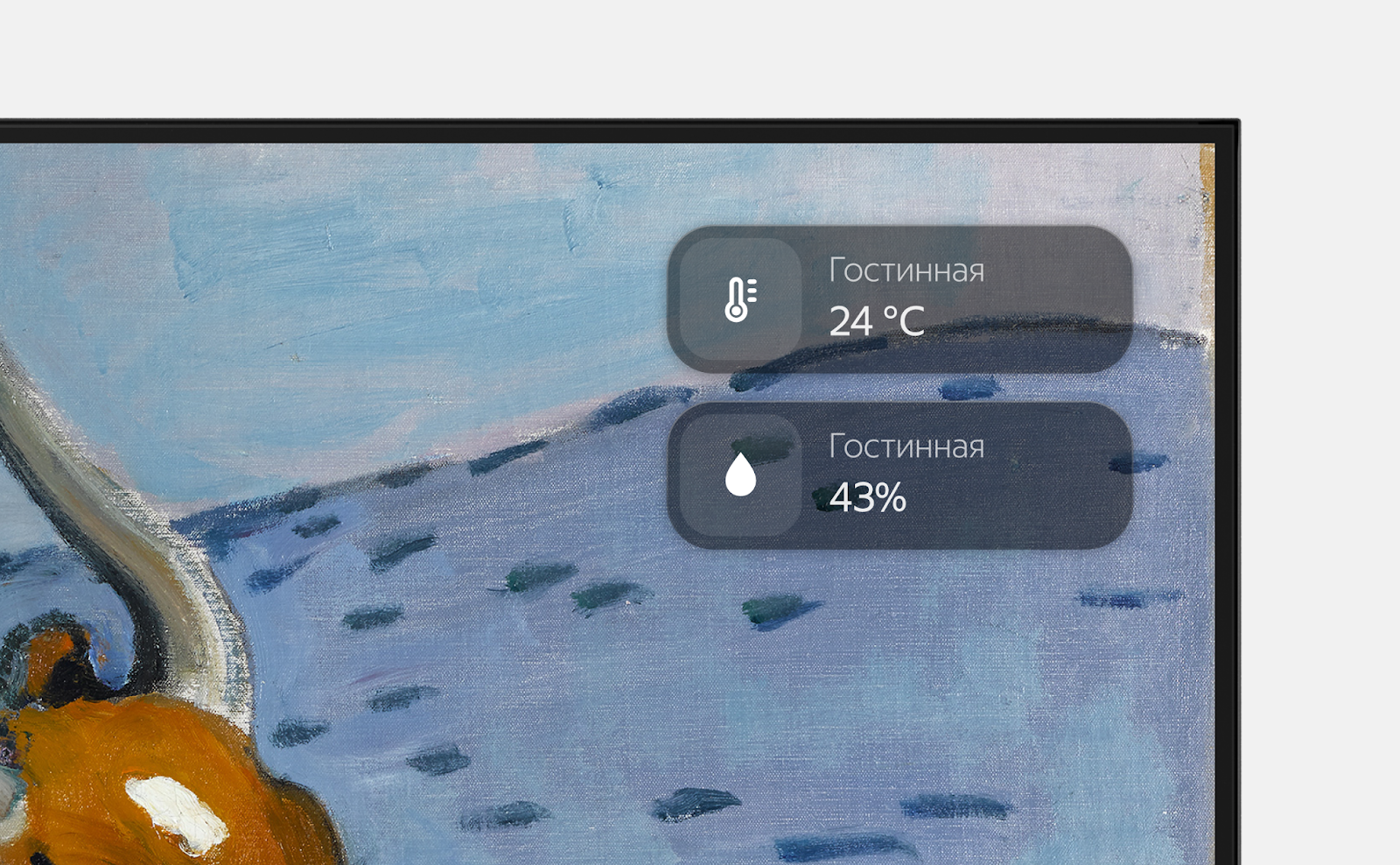 Возможность доступна на всех ТВ Станциях. Чтобы добавить виджеты, на экране заставки нажмите кнопку «Вверх» на пульте, выберите «Виджеты умного дома» и отметьте нужные.