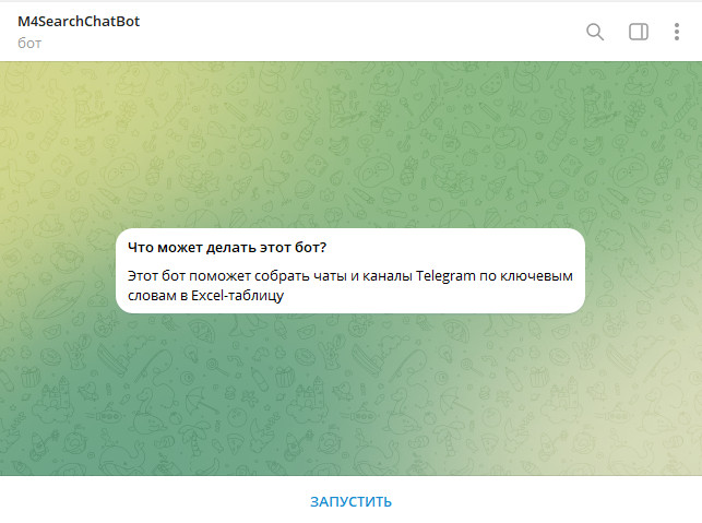 Я создал Telegram-бота, который собирает данные о каналах и группах. На данный момент база насчитывает несколько тысяч записей, но она регулярно обновляется и уже готова к использованию. Бот предоставляет структурированные данные, экономя ваше время.
