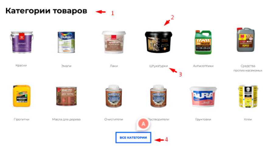 - На главной странице не было списка категорий. Предложили вывести наиболее частотные категории, которые на данный момент уже были на сайте.
