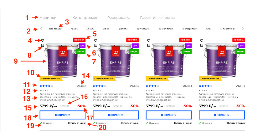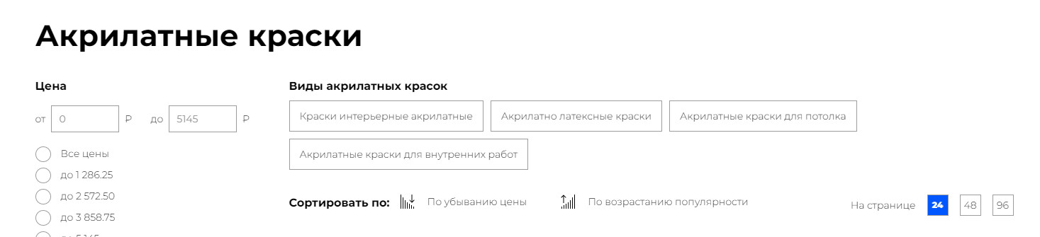 - На сайте были недостаточно полные листинги товаров относительно конкурентов. Например, у нас на сайте 8 товаров, а у конкурентов 24. Поэтому все неполные листинги решили расширить за счет товаров одной группы, но разных объемов.