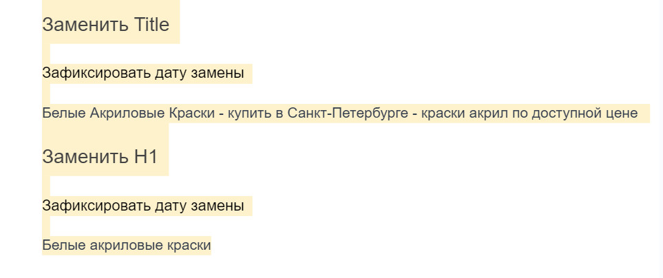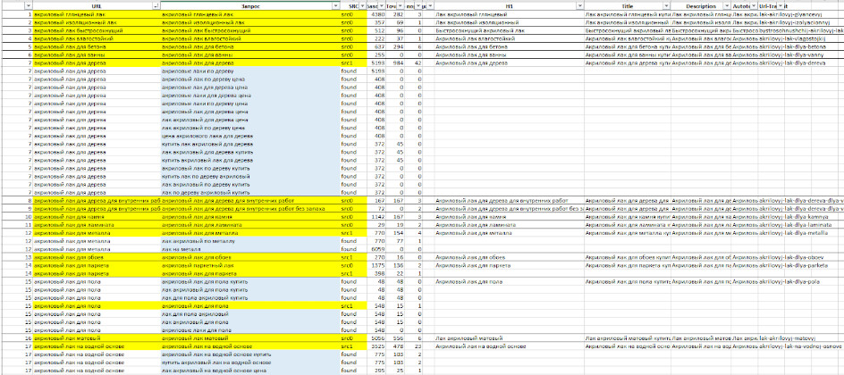 - У большинства товаров не были прописаны метаданные. Были подготовлены шаблоны и прописаны на соответствующих страницах. У категорий в дальнейшем прорабатывались в ручную, для большей плотности ключевых слов.