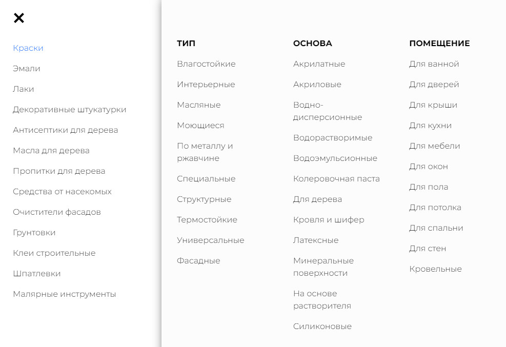 - Настроить человекопонятные URL. На сайте было так: https://lakiikraski.ru/catalog/antiseptiki/ognezashchitnaya_kraska/1347/?oid=531