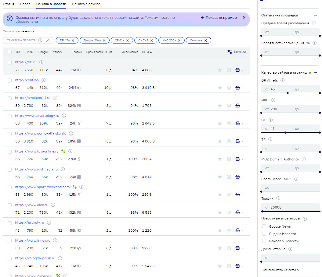 Работа подклейкой тематических сайтов