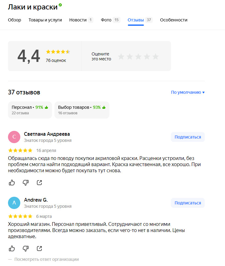 Работа с отзывами