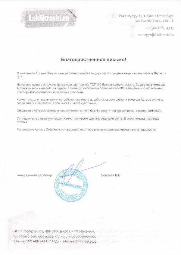 Отзыв заказчика