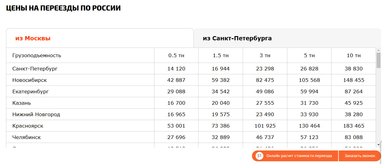 - Лидеры рынка имеют разветвленную структуру с отдельными страницами под каждый тип перевозок