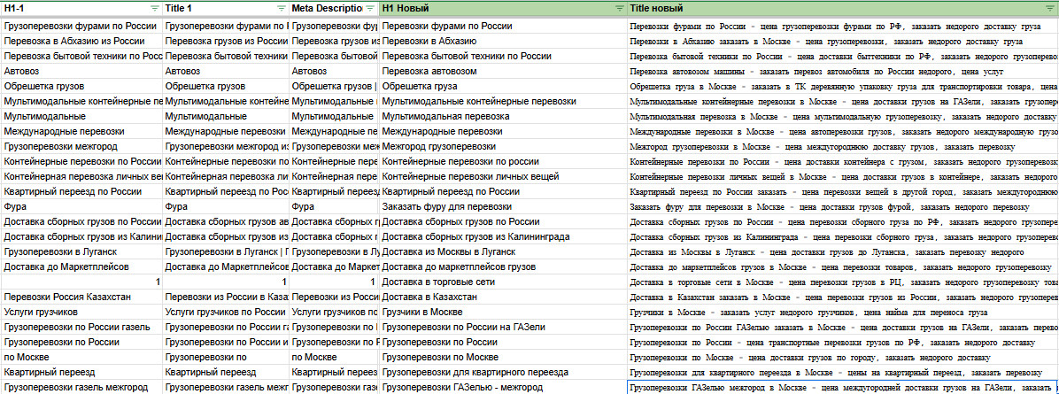 Первым шагом стал глубокий анализ ТОП-10 конкурентов по основным запросам в нише грузоперевозок: