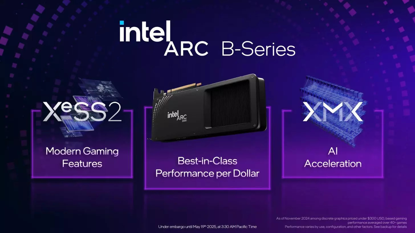 Старшая модель — Arc Pro B60 — основана на полном кристалле BMG-G21 и включает 20 ядер Xe, 160 блоков XMX и 24 ГБ памяти с 192-битной шиной и пропускной способностью 456 ГБ/с. Пиковая производительность достигает 197 TOPS при энергопотреблении до 200 Вт.