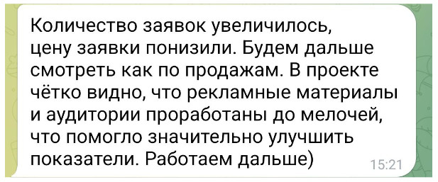 Параллельно с рекламой мы запустили чат-бота, который сразу же отсеивал нецелевые заявки. На одном из этапов кампании почти 50% тех, кто подписывался на бота, оставляли заявку. Это стало важным показателем, что мы двигаемся в нужном направлении.