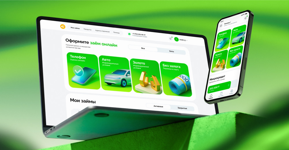 За 4 месяцев мы собрали MVP, а ещё через 7 месяцев запустили стабильную и масштабируемую платформу: мобильное приложение под iOS и Android, сайт с личным кабинетом и мощную админ-панель для управления заявками. Всё это с адаптацией под рынок Казахстана, интеграцией местных вендоров (включая BrainySoft и Aitu) и поддержкой четырёх видов займов — от беззалоговых до автоломбарда.