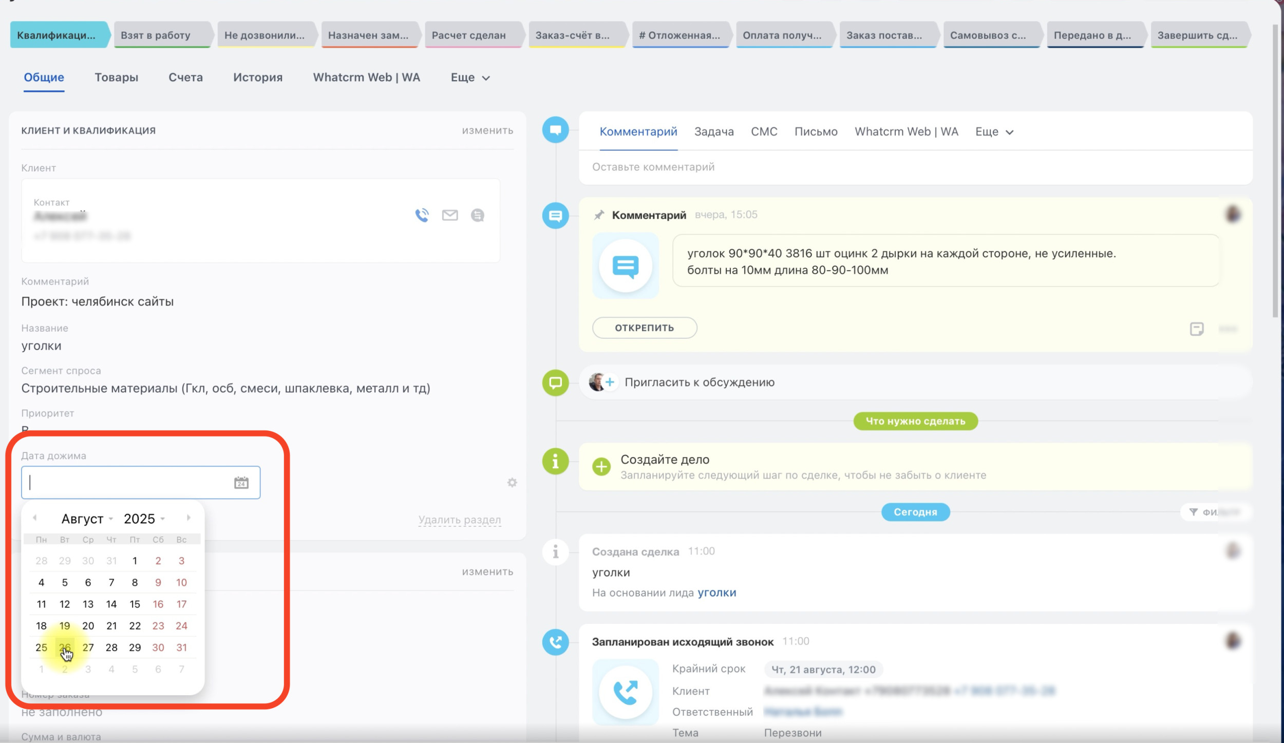 Первым делом мы создали чат в Битрикс с собственником и его ассистентом (она же HR) и ввели простое правило: каждое утро ассистент пишет план задач на день, а вечером пишет подробный отчет о том, что сделано. Это помогло сфокусироваться на самом важном — задачи перестали теряться. Собственник в операционку не погружался: он наблюдал за процессом и принимал ключевые решения по финансам и договорённостям с сотрудниками. Основное взаимодействие шло через ассистента и нас. Параллельно мы запустили поиск руководителя отдела продаж. Взяли принцип «бережливого найма»: первые два месяца кандидат работает как менеджер и сам зарабатывает себе зарплату. Это позволяло протестировать человека в деле и минимизировать риски для компании. На вакансию откликнулось много людей, но мы смотрели не только на опыт, а и на психотип. Нам был нужен сенсорик и рационал — человек дисциплинированный, умеющий работать по системе. В итоге выбрали кандидата с психотипом «Драйзер»: этичного, структурного и умеющего управлять людьми. Новый руководитель уже в первый месяц показал результат: вышел в продажи и заработал себе зарплату сделками. Это подтвердило правильность выбора и дало зелёный свет на дальнейшие изменения. Когда мы приступили к работе, оказалось, что документы и материалы по продажам в компании уже были. Но собраны они «как попало»: куски скриптов писали разные консультанты, регламенты — разные руководители. Всё это лежало в разных местах и не складывалось в единую технологию продаж. То есть один скрипт предлагал звонить клиенту сразу, другой — ждать ответа по почте. В одном регламенте писали фиксировать каждый контакт в CRM, в другом про CRM вообще не упоминалось. Менеджеры брали то, что им было удобно, и работали «каждый по-своему». Мы начали с разбора бардака в документах. Собрали в одном месте все рабочие материалы, которые были в компании: старые скрипты, регламенты, инструкции по работе в 1С и CRM и составили список компетенций, которыми должен обладать менеджер: На основе этого сделали список того, что должен уметь менеджер и разработали план обучения. Сначала — для руководителя отдела продаж, чтобы он прошёл путь менеджера своими руками. Потом — для его менеджеров. Мы использовали методику пошагового обучения: от базовых знаний о продукте и работе в CRM (Битрикс24) до продвинутых техник дожима клиентов. Менеджеры начали понимать пошагово, что делать на каждом этапе. Формально Битрикс24 в компании стоял, но совершенно не упрощал работу менеджеров. В CRM было много лишних полей, которые мешали. Большинство из них менеджерам были не нужны в момент продажи. Задачи в CRM назначались вручную, и если менеджер забывал поставить дату следующего звонка — лид «зависал» без движения. Дожимы никак не контролировались, система не напоминала о клиентах. Из-за этого они путались, не понимали, что заполнять, и просто пропускали важные шаги. В итоге CRM только мешала — и сотрудники её игнорировали. Мы сделали всё проще: CRM стала удобной: каждый лид фиксируется, каждый контакт отмечается, повторные касания контролируются. Руководитель теперь видит в календаре, какие сделки в работе, у кого просрочены дожимы и кто «сливает» клиентов. Это убрало субъективность и заставило менеджеров работать дисциплинированно. Раньше менеджеры вели клиента от заявки до самой отгруз