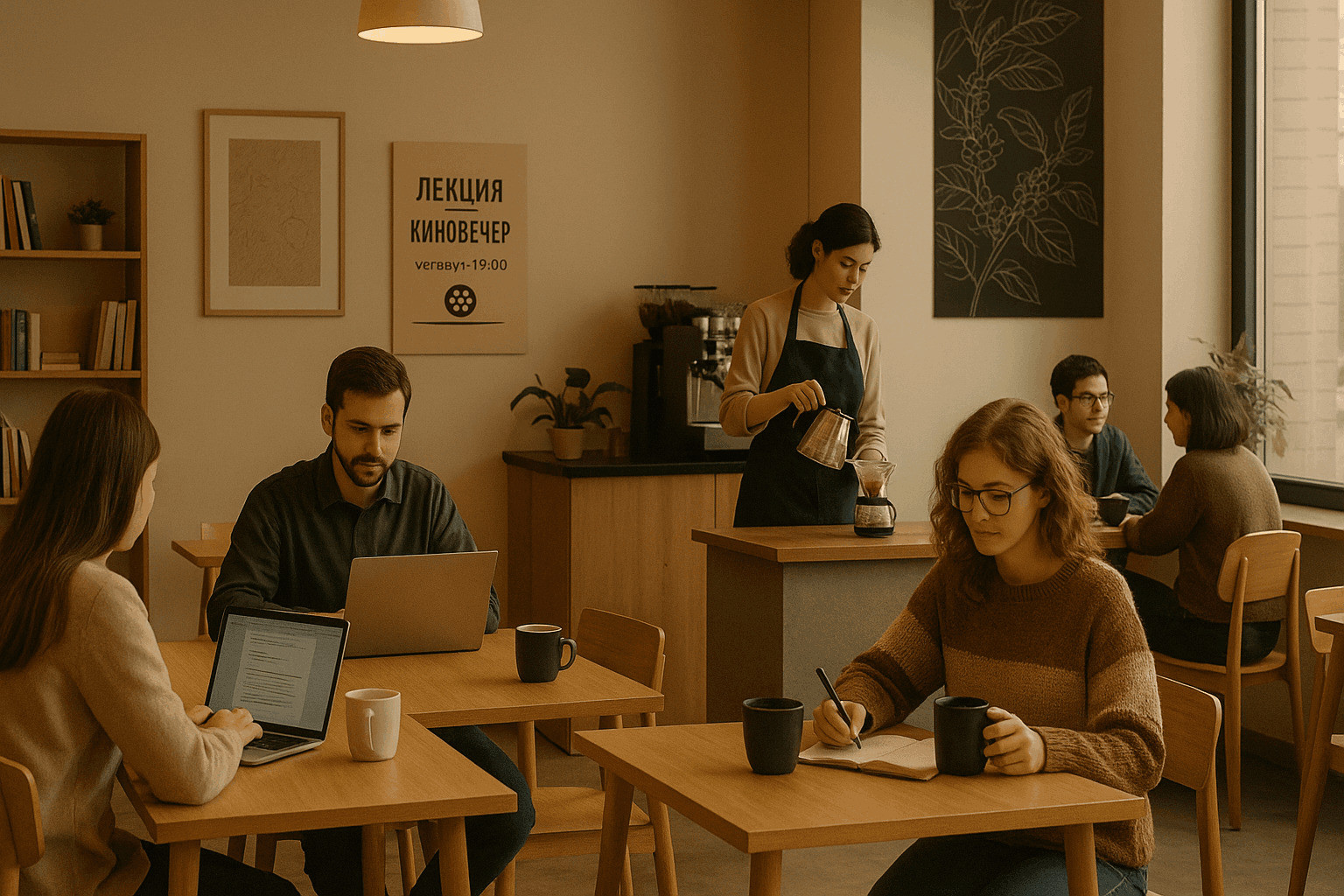 Что общего у коворкинга, лектория и уютной кофейни? Ответ — пространство с понятной культурой. Когда кофейня формирует собственный стиль общения, визуальный язык, формат подачи напитков, она притягивает людей, которые с этим резонируют. Это может быть «тихая точка» для фрилансеров, «вкусная станция» для студентов или «пространство идей» для локальных предпринимателей.
