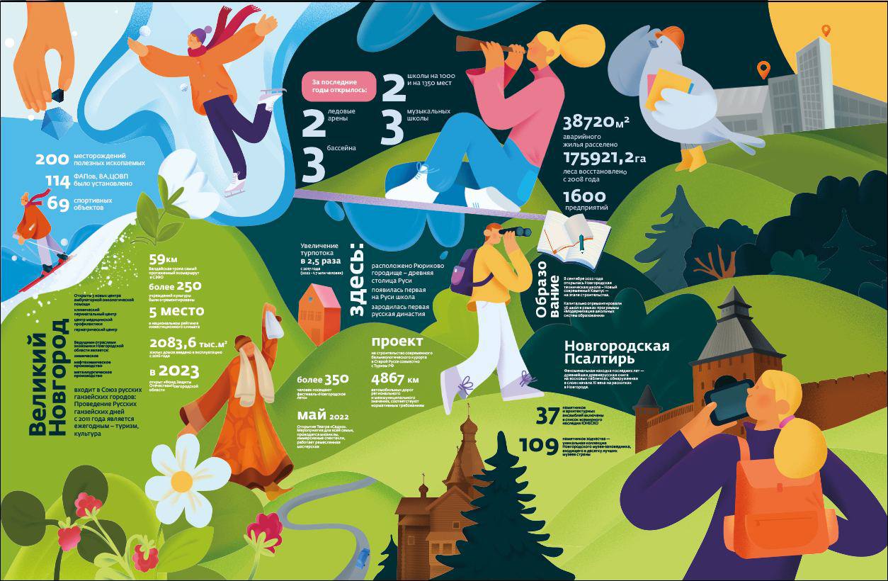 Иллюстрация стенда Новгородской области для выставки регионов на форуме «Россия»