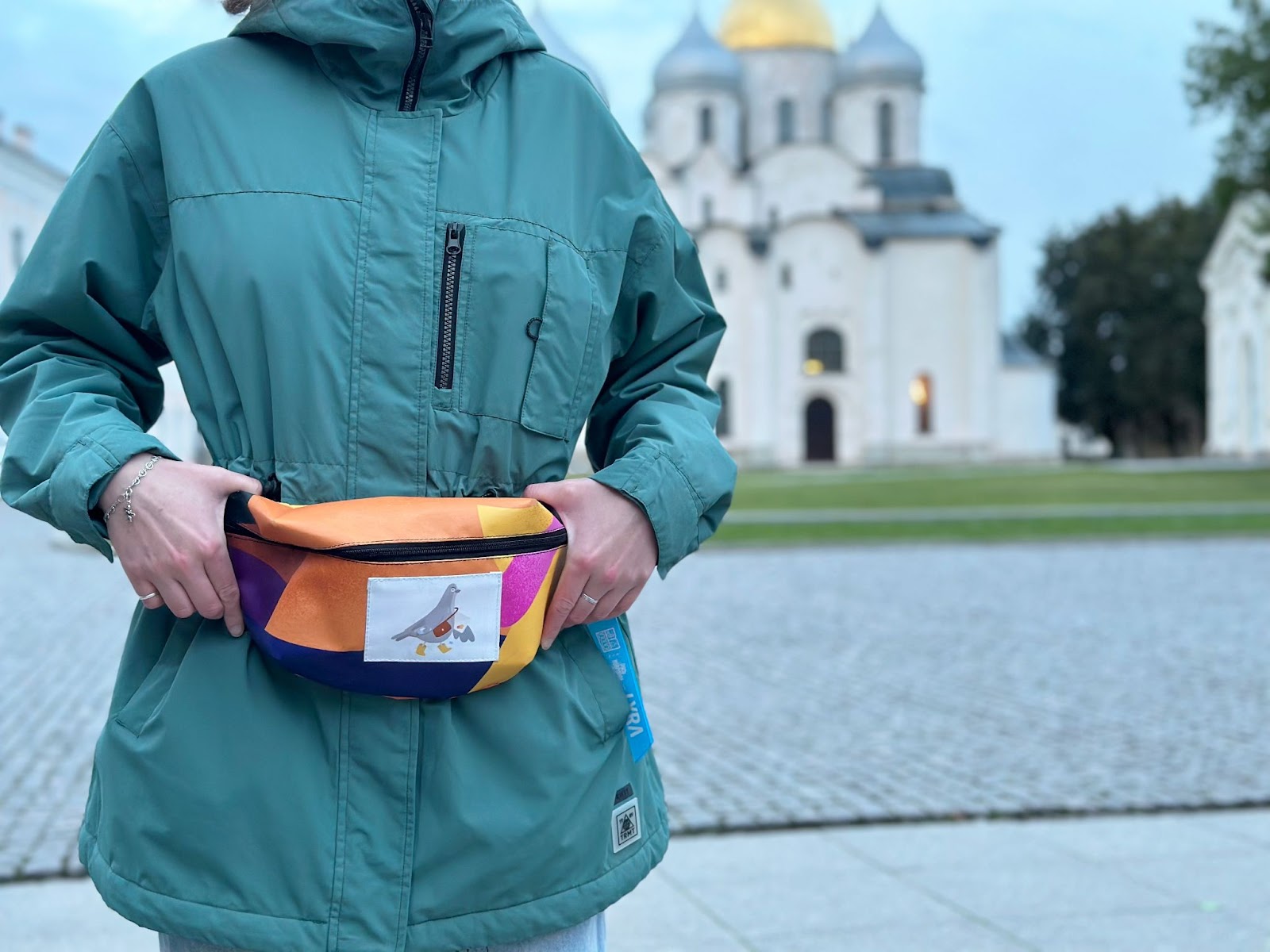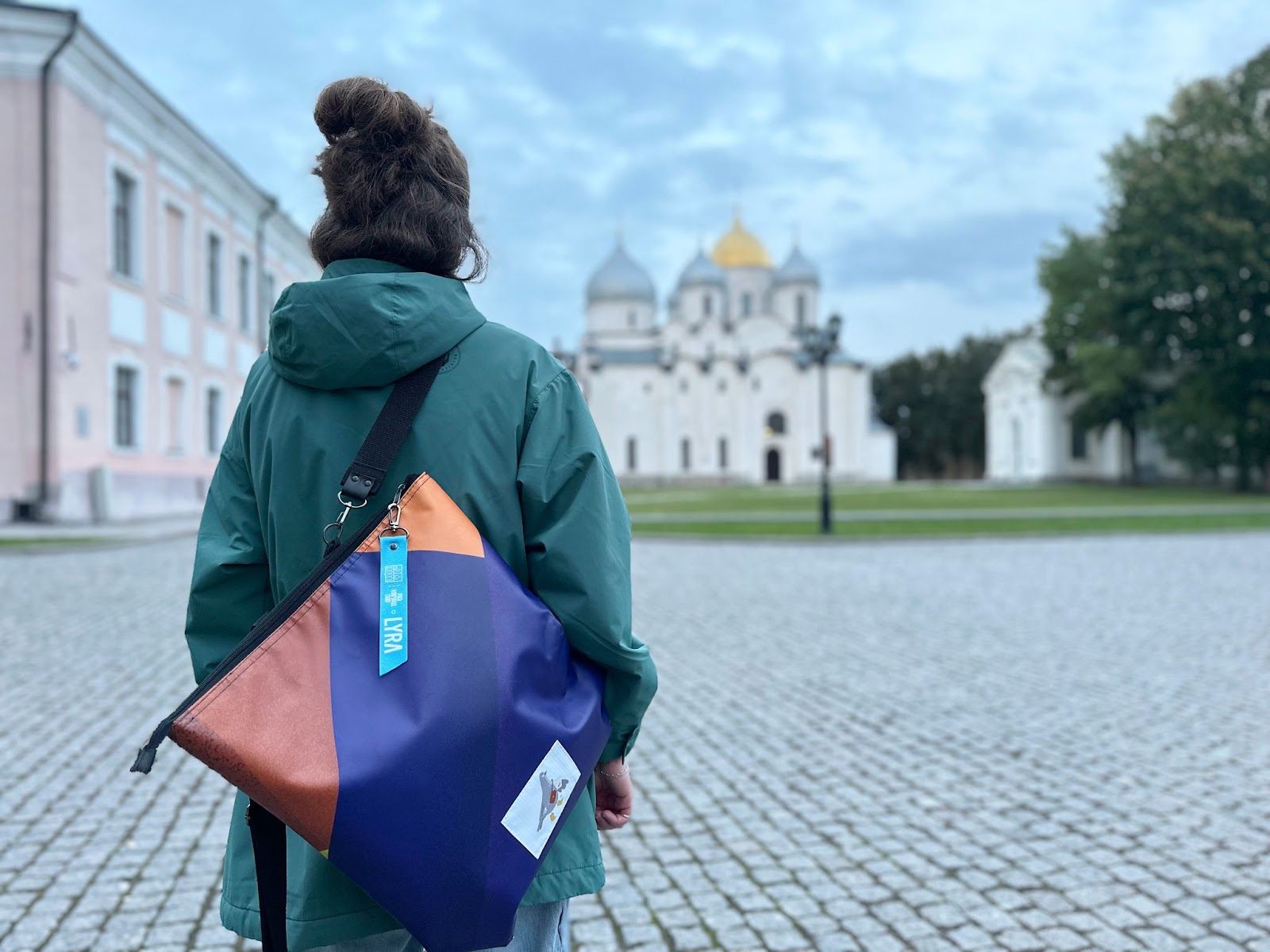 Мы вложили душу в этот масштабный проект и хотели оставить что-то на память о нем, дать нашей красочной иллюстрации со стенда вторую жизнь. Это должна быть красивая, но при этом полезная вещь, которой будет приятно пользоваться каждый день. Наш выбор пал на поясные сумки, косметички и рюкзаки. Мы за многоразовые решения и осознанное потребление, поэтому для изготовления сумок, рюкзаков и косметичек использовали баннер прямо со стенда. Он оказался очень прочным и водонепроницаемым материалом, идеально подходящим для осенних прогулок. Особое внимание уделили деталям на внешней стороне вещей и внутри. В процессе работы на выставке у команды Лиры появились любимые персонажи. Один из таких — Новгородский голубь, чья иллюстрация теперь красуется на всех сумках, косметичках и рюкзаках. Голубя в качестве главного персонажа выбрали не просто так. Он не только ассоциируется с голубиной почтой, но и является символом Святого Духа для новгородцев. Свинцовый голубь много лет украшает крест главного купола Софийского собора. По легенде, эта птица окаменела на кресте от ужаса во время погрома Новгорода в 1570 году Иваном Грозным и застыла там навеки. Одну часть мерча мы оставили себе, а другую подарили клиенту в качестве приятного напоминания о совместной работе. Теперь, если вы увидите в Москве или Новгороде человека с такой сумкой или рюкзаком, — знайте, это участник нашей большой проектной команды выставки «Россия». Получайте первыми новости о самых ярких проектах. Подписывайтесь на наш telegram-канал.