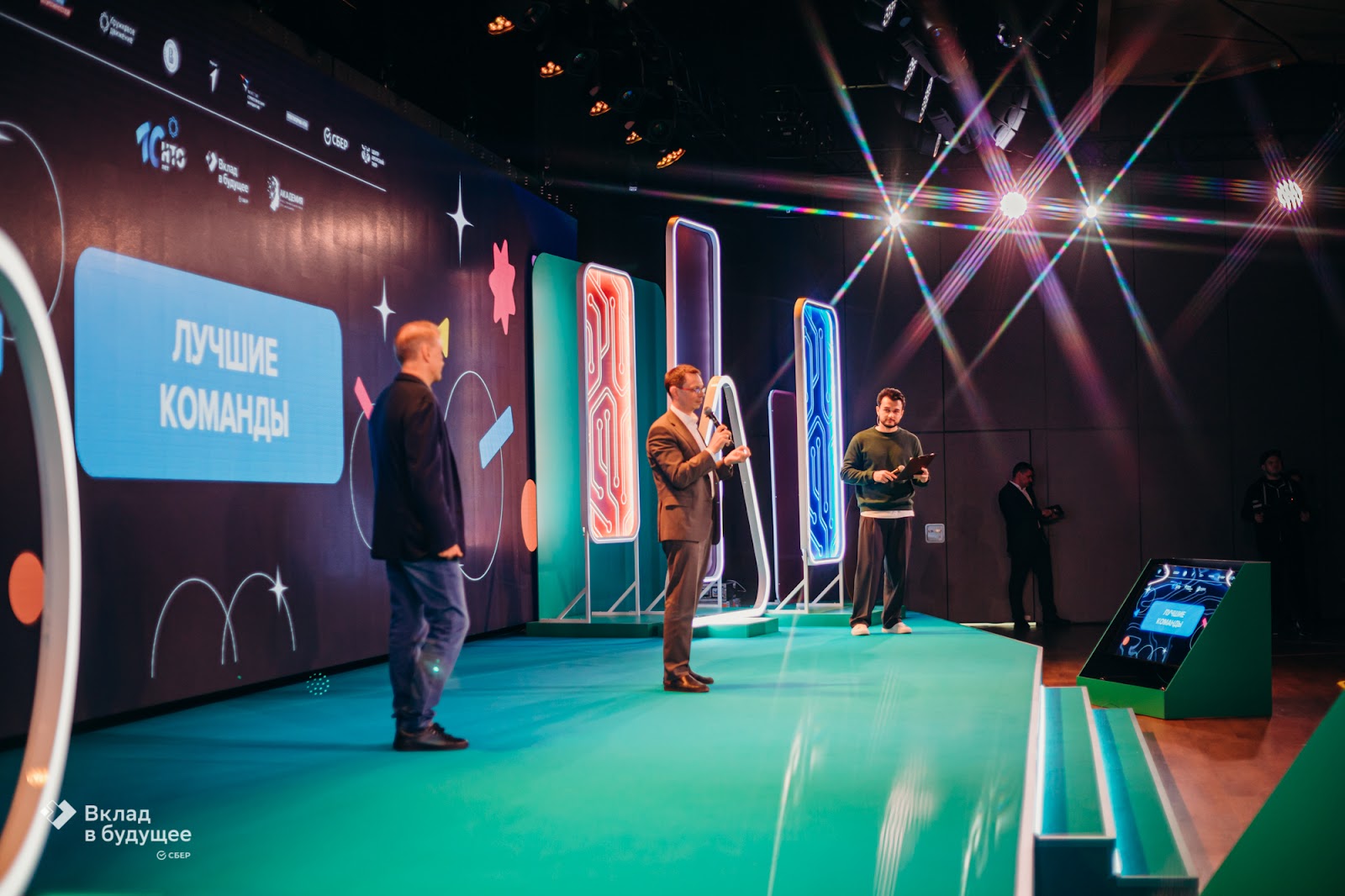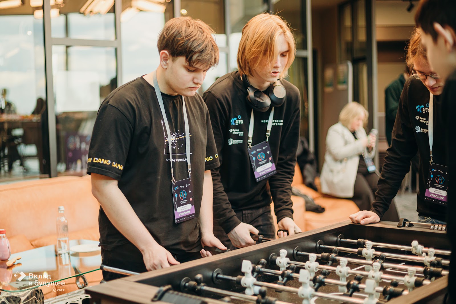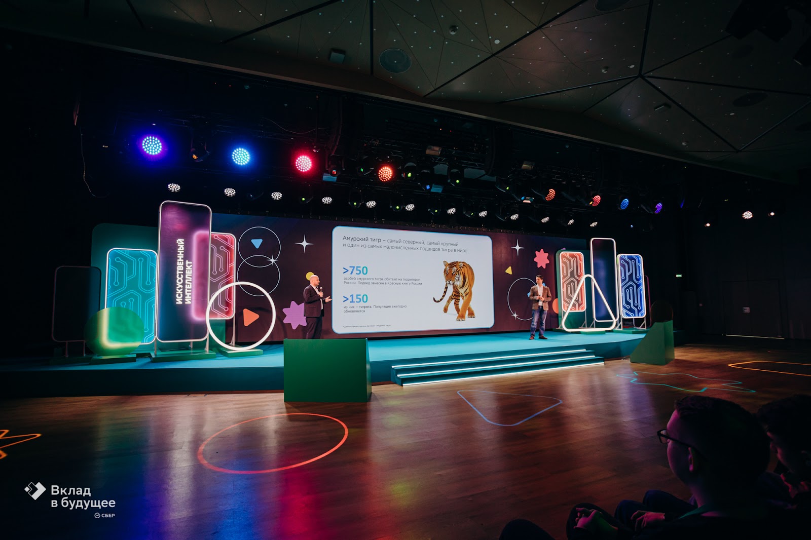 Мы провели мероприятие под ключ: разработали креативную концепцию и брендинг, сценарий, дизайн-макеты, застроили главную сцену, курировали работу промоперсонала и кейтеринга. Утром 11 апреля прошло открытие мероприятия с участием топ-менеджеров Сбера и Центра «Амурский тигр». Программа продолжилась выступлениями выдающихся выпускников Академии ИИ в формате TEDx. Затем школьников ждала экскурсия по офису Сбера. Ребята заглянули в зону Sber Innovations, Лабораторию Робототехники, SberDevices, познакомились с технологией эквайринга. Чтобы юные гости не заскучали во время кофе-брейков, мы расположили множество разнообразных интерактивов. Ребята могли распечатать селфи в фотобудке «Стереофото», сыграть в настольный футбол, «Космоболл», посоревноваться в угадывании звуков «Шумбокс» и многое другое. После обеда мы были готовы начать торжественную церемонию. В начале с приветственным словом выступил Герман Греф, Президент, Председатель Правления Сбербанка. После на сцену пригласили призеров и победителей, чтобы официально поздравить их, а также вручить дипломы и денежные сертификаты на обучение. Завершился день в офисе Сбера неформальным общением под диджей-сеты в зонах СберЛаундж и СберТусовка, играми в Just Dance, PS4, разгадать капчи в игре «Я не робот» и настольными играми. Получайте первыми новости о самых ярких проектах. Подписывайтесь на наш telegram-канал.
