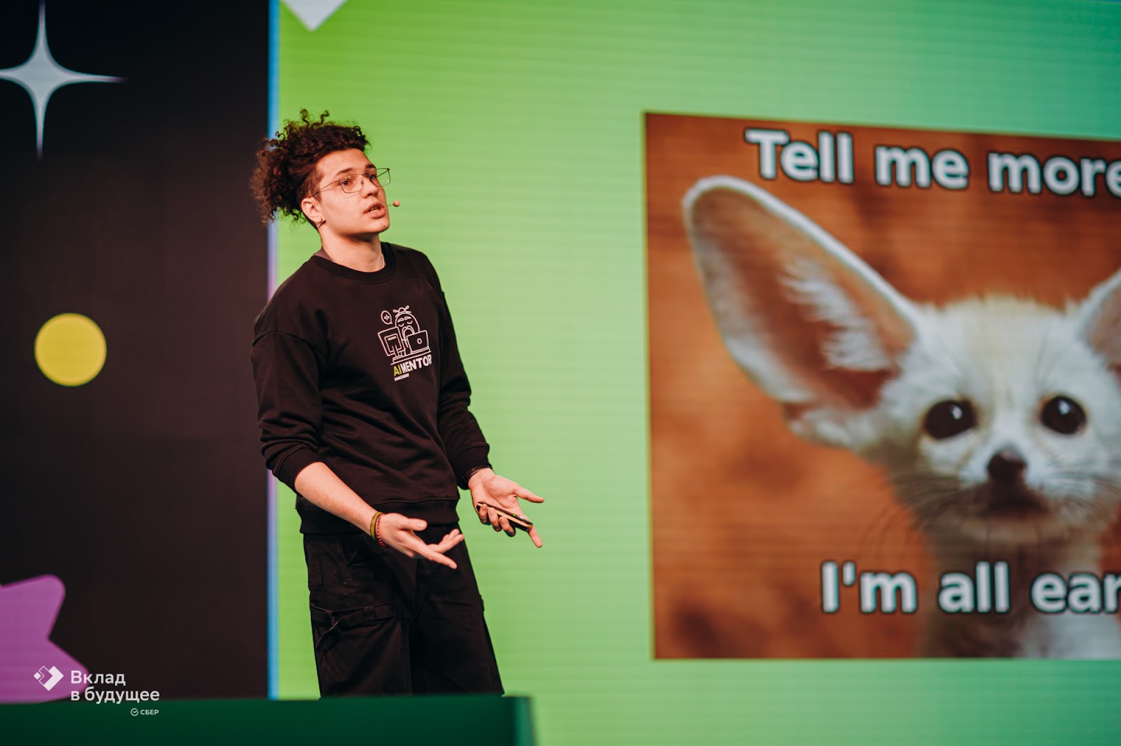Ребята, присутствующие на сегодняшнем награждении, — победители. Вы прошли колоссальный отбор, и я поздравляю вас с этим! Сегодня без искусственного интеллекта не может развиваться ни одна профессия. Вам выпала уникальная возможность — переизобрести мир и осуществить новую технологическую революцию, кардинально более мощную, чем все предыдущие.