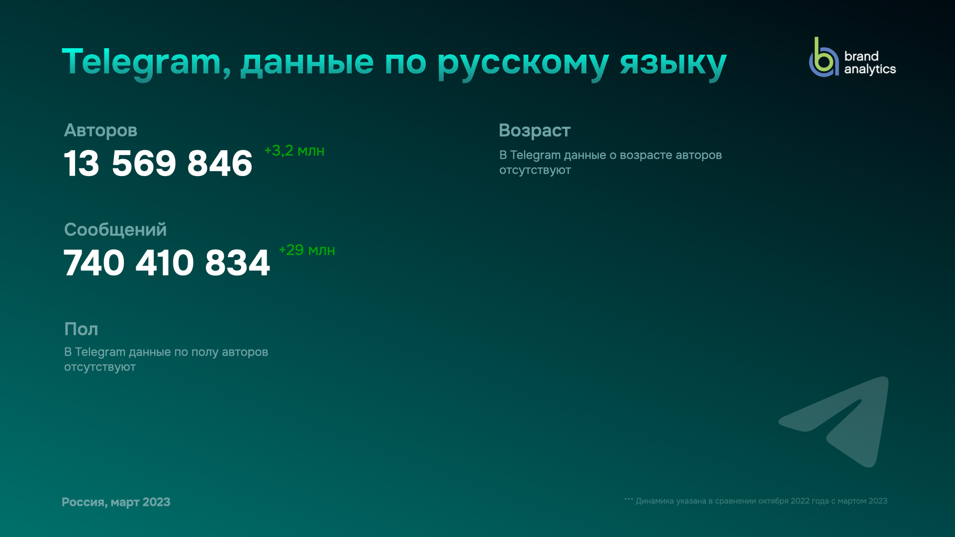 Данные BrandAnalytics: в 2023 году количество авторов в Телеграме увеличилось на 24%, в то время как другие каналы продолжают терять авторов. Mediascope: 33% времени использования Телеграм приходится именно на каналы.