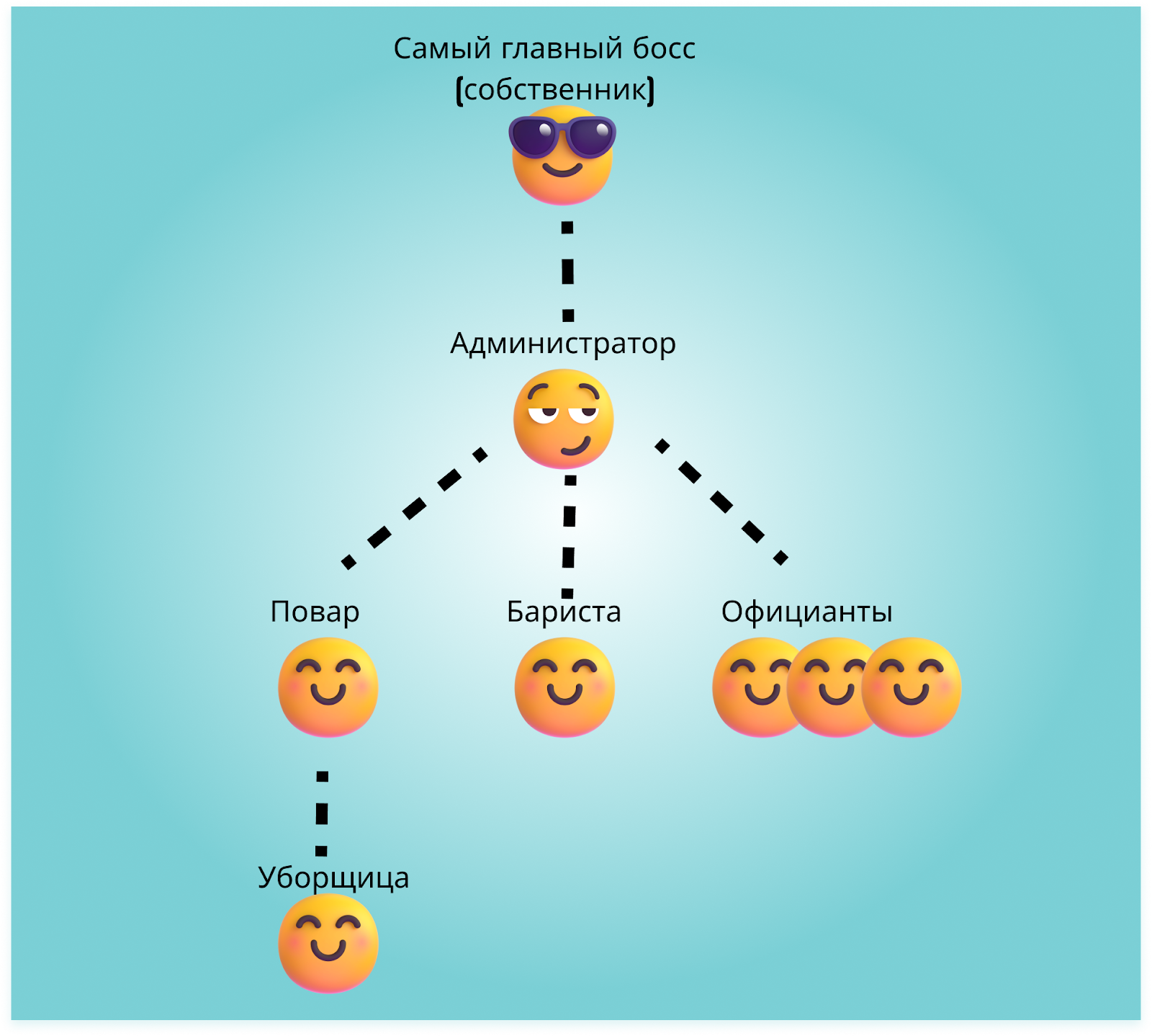 Алена — владелец сети парикмахерских. На старте бизнеса она многое делала сама: записывала клиентов, пополняла расходники и мониторила социальные сети. Бизнес вырос до пяти филиалов, и список обязанностей Алены кардинально изменился. За материалы и записи отвечает администратор, социальными сетями занимается SMM-специалист. А хозяйка принимает решения о внедрении новых услуг, планирует бюджет и организует обучение мастеров.